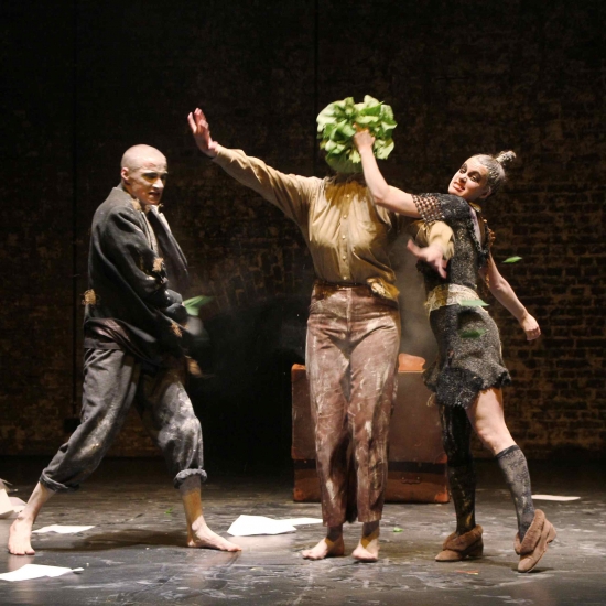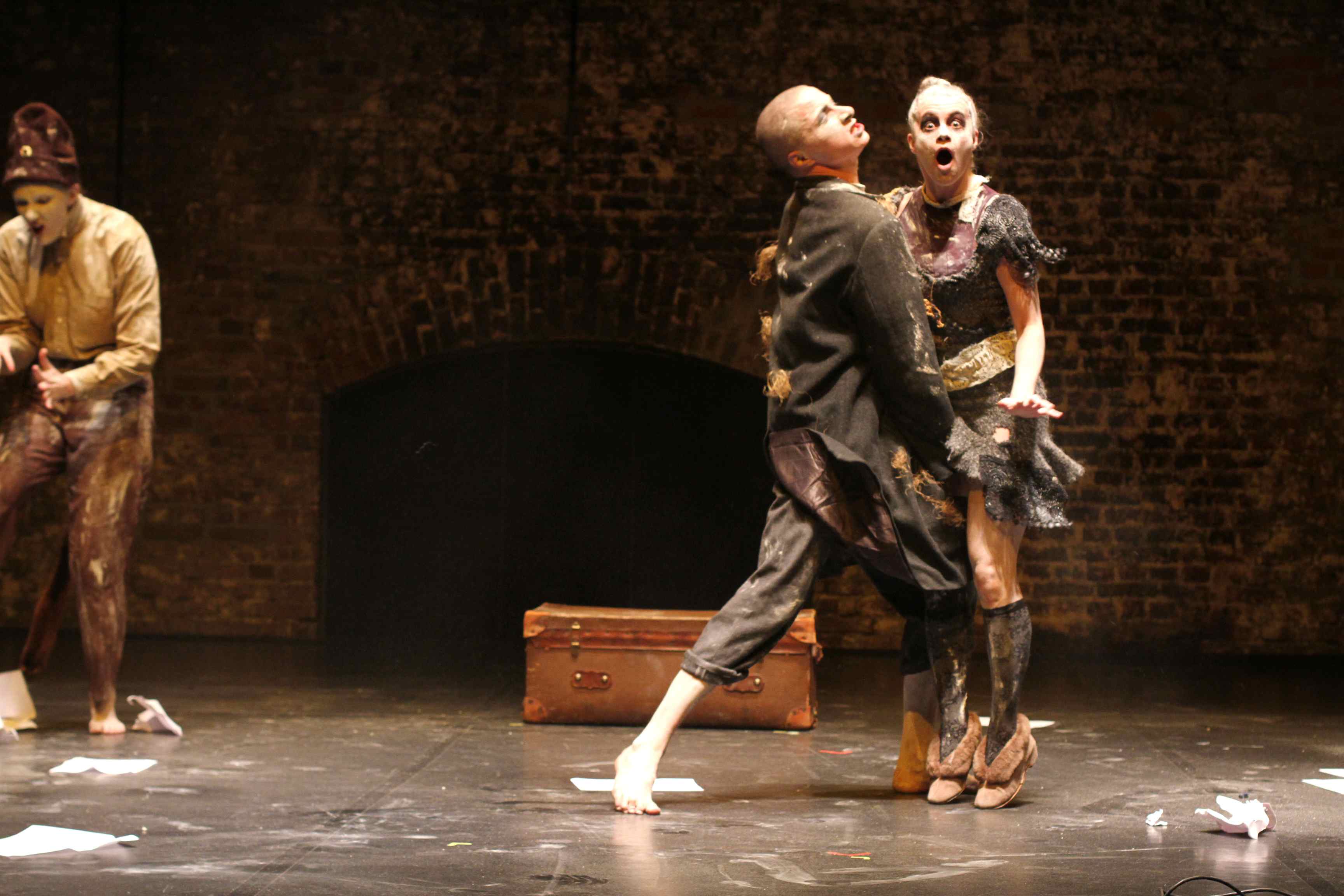 Three bouffon-esque characters intent on telling ‘The Old Woman’ story let narrative escape them as comic vignettes, metaphysicalponderings and bouts of senseless violence provide constant distraction.