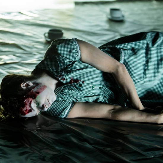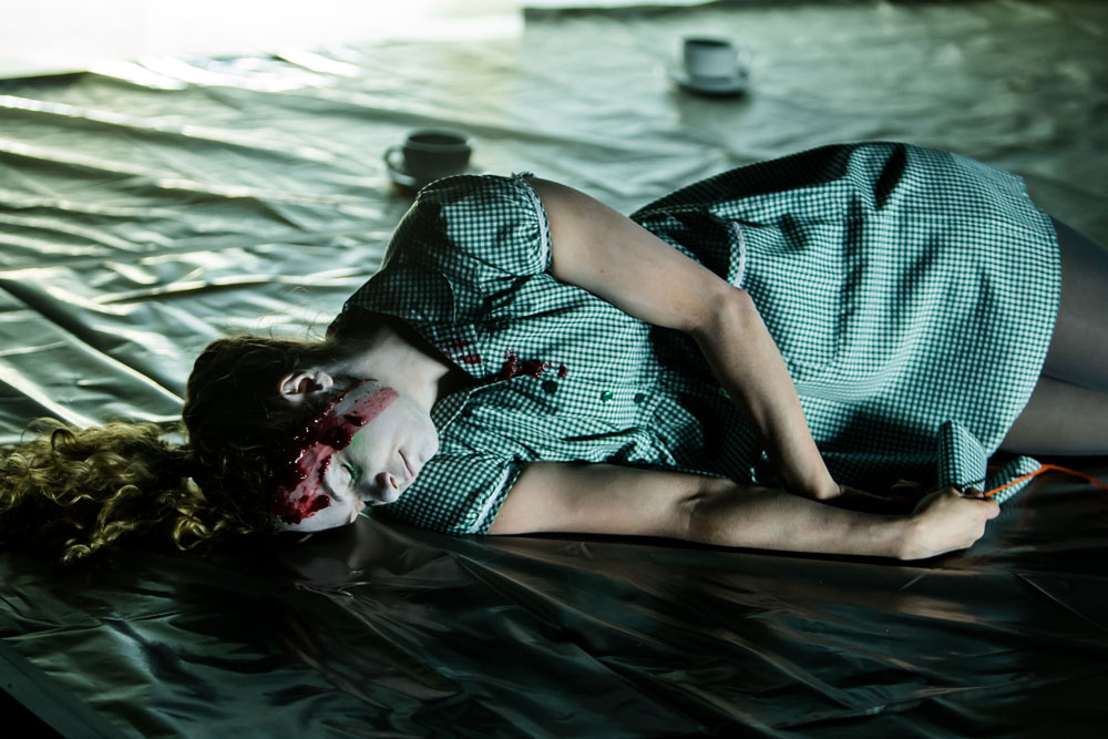 Ignoring the gruesome symptoms of their own deaths, three characters guide us through the strange and disquieting landscape they now inhabit. A plastic wasteland where domestic disputes last thousands of years, death doesn't work and milk-bottle-slurping children make the rules. A place of bloodbaths, shopping lists, premature burials and polite tea drinking.